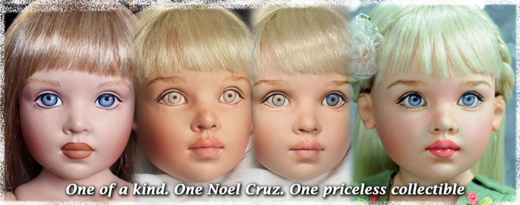 Dolls previously auctioned by Noel on eBay will start at the higher of their original closing bid or the standard minimum commission price—$1,250 for 12″ dolls or $1,250 for 16″ dolls.