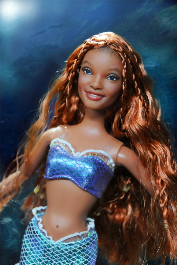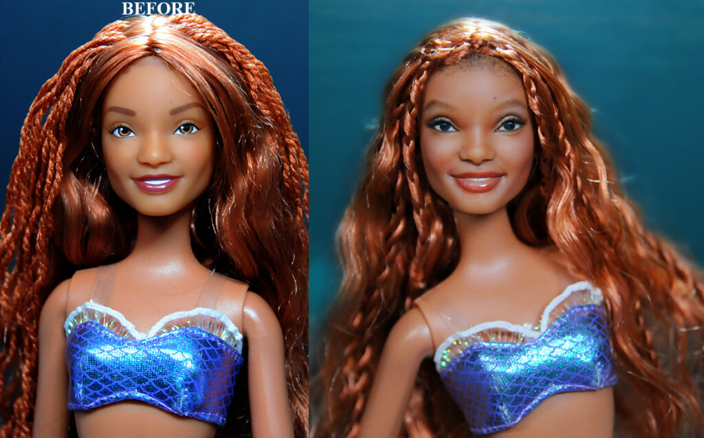 As Ariel Barbie and as repainted and restyled by Noel Cruz.